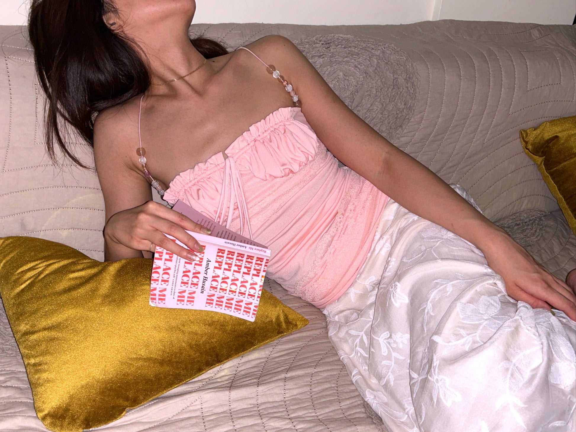 Pink Beaded Lace Camisole Tiered Ruffle Detail & Adjustable Straps