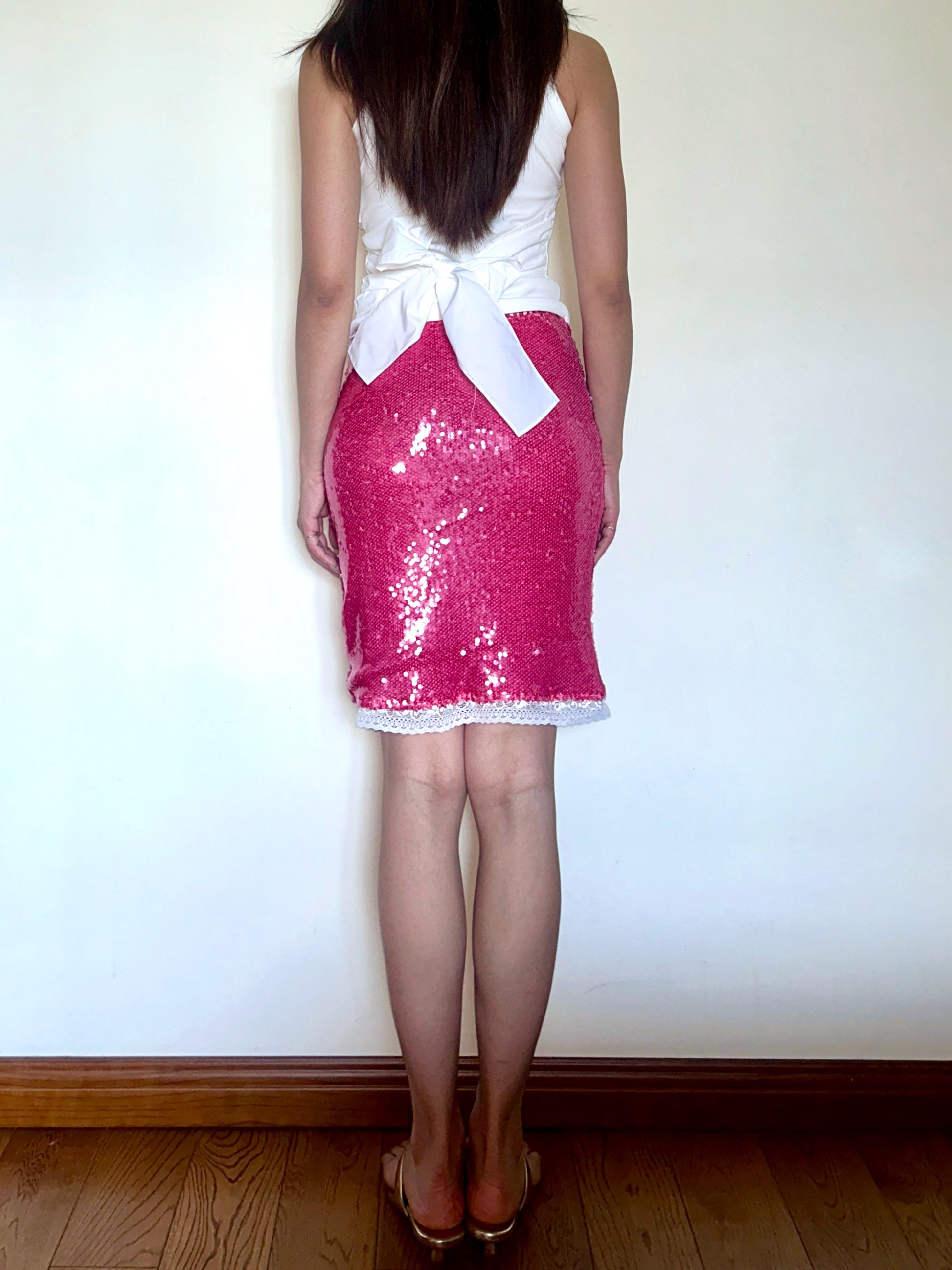 Pink Sequin Midi Skirt Metallic Lace with Stretch Fit